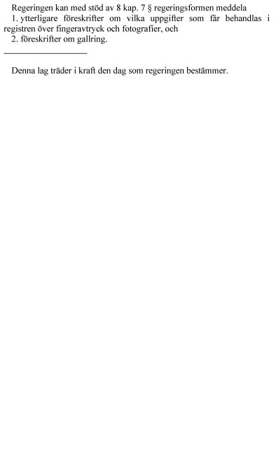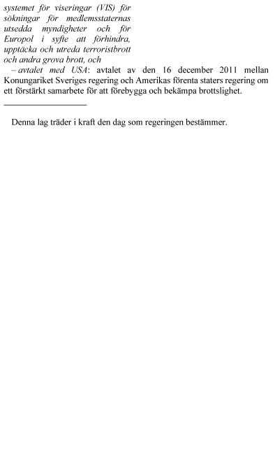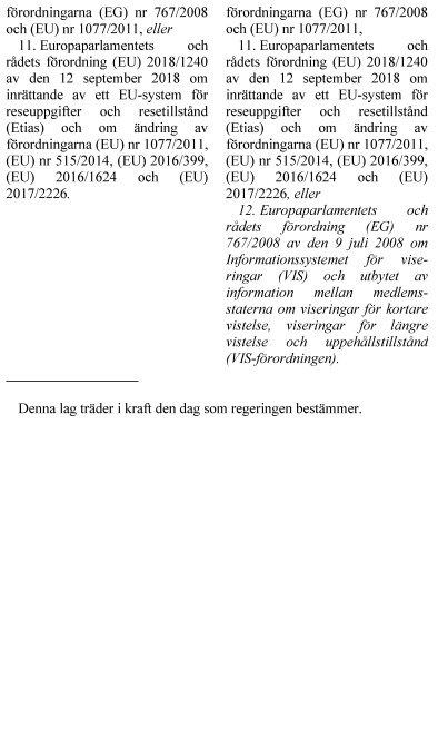Regeringen beslutade den 4 september 2025 om förordning 2025:850 som innebär att lagen (2022:242) om ändring i utlänningslagen ska träda i kraft den 12 oktober 2025. Regeringen beslutade också den 4 september 2025 om förordning 2025:851 som innebär att lagen (2022:243) om ändring i utlänningsdatalagen ska träda i kraft den 12 oktober 2025. Dessutom beslutade regeringen den 4 september 2025 om förordning 2025:852 som innebär att lagen (2022:244) om ändring i lagen om polisens behandling av personuppgifter inom brottsdatalagens område ska träda i kraft den 12 oktober 2025.