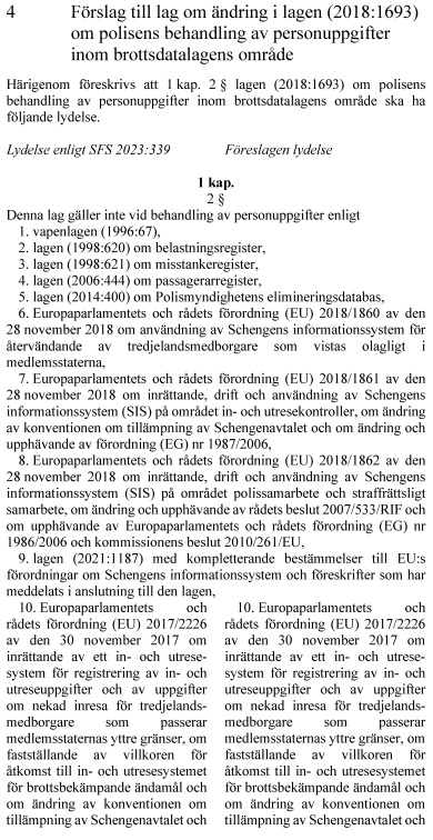 4. lag om ändring i lagen (2018:1693) om polisens behandling av personuppgifter inom brottsdatalagens område.