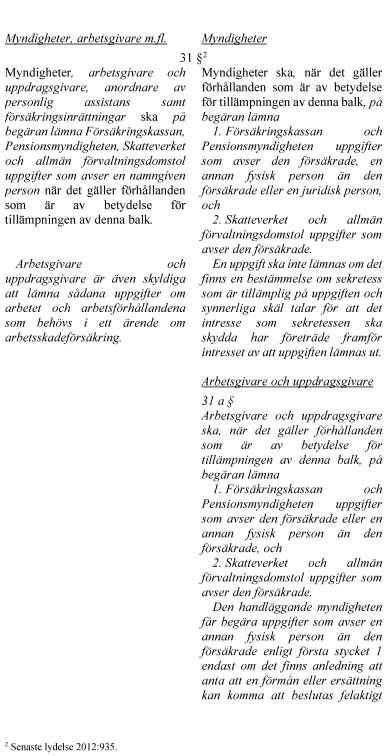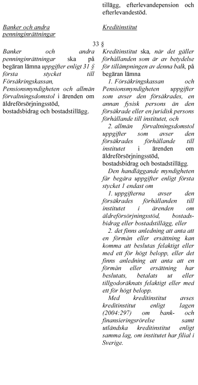 Genom lagändringarna införs utökade utredningsbefogenheter och uppgiftsskyldigheter som syftar till att stärka förutsättningarna för Försäkringskassan, Pensionsmyndigheten och kommunernas socialnämnder att fatta korrekta beslut och förhindra felaktiga utbetalningar. Uppgifter ska kunna inhämtas om såväl den försäkrade som en annan fysisk person samt om juridiska personer. Utökad uppgiftsskyldighet ska bl.a. gälla för myndigheter, anordnare av personlig assistans, försäkringsinrättningar och kreditinstitut. Lagändringarna innebär även att sekretesskyddet hos Försäkringskassan och Pensionsmyndigheten för uppgifter om enskildas affärs- och driftsförhållanden utökas.