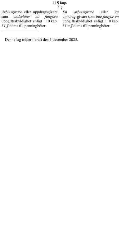 Lagändringarna föreslås träda i kraft den 1 december 2025.