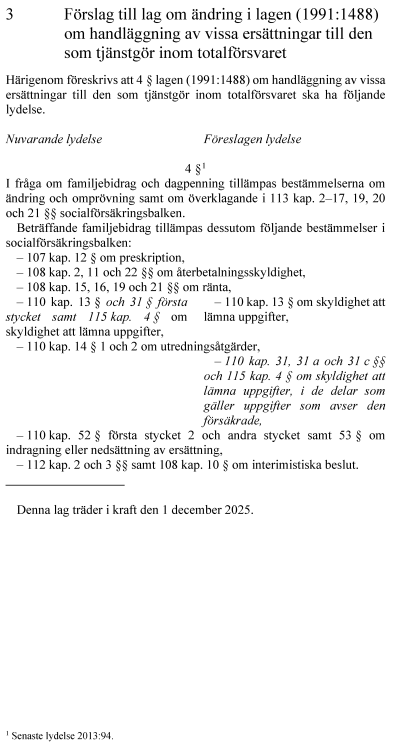 3. lag om ändring i lagen (1991:1488) om handläggning av vissa ersättningar till den som tjänstgör inom totalförsvaret,