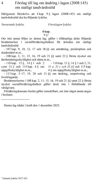 4. lag om ändring i lagen (2008:145) om statligt tandvårdsstöd,