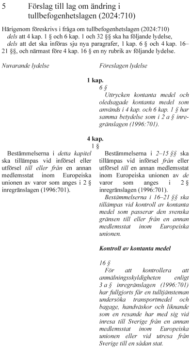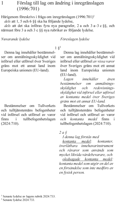 Proposition 2025/26:81 Kontroller av kontanta medel vid den inre gränsen.