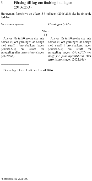 Lagändringarna föreslås träda i kraft den 1 april 2026.