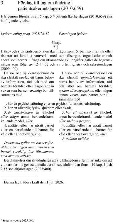 Lagändringarna föreslås träda i kraft den 1 juli 2026.