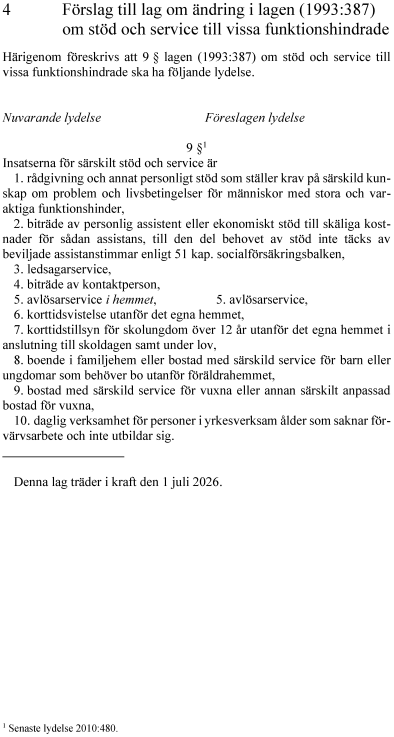 4. lag om ändring i lagen (1993:387) om stöd och service till vissa funktionshindrade.