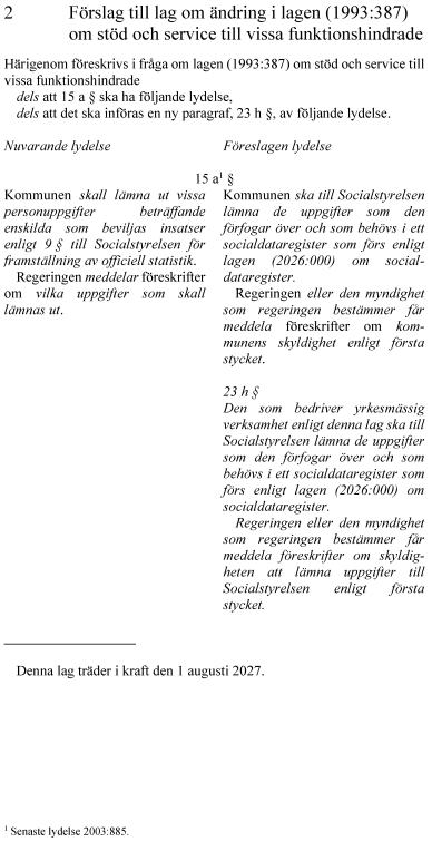 2. lag om ändring i lagen (1993:387) om stöd och service till vissa funktionshindrade,