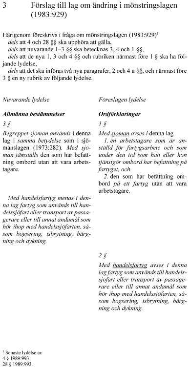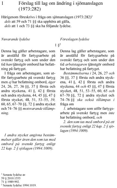 1. Riksdagen antar regeringens förslag till lag om ändring i sjömanslagen (1973:282).
