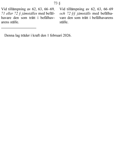 Lagändringarna föreslås träda i kraft den 1 februari 2026.