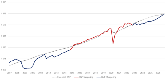 (Svensk BNP vs. Potentiell BNP, SEK miljarder)