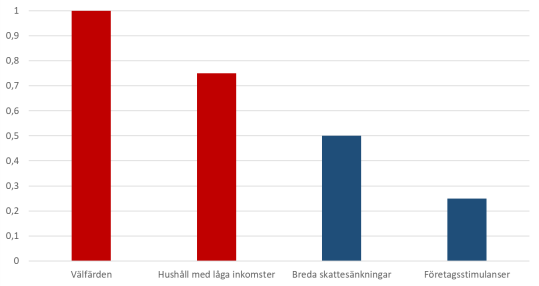 Konjunkturinstitutet har, i likhet med de flesta internationella studier på området, bedömt att offentliga satsningar på välfärd och stöd till låg- och medelinkomsttagare har större effekt på tillväxten än skattesänkningar för höginkomsttagare. En regering som hade satt svensk ekonomi före partiinterna egenintressen hade därför använt skattepengarna där de gör mest nytta: hos barnfamiljer, pensionärer och ensamstående; i sjukvård, skola och äldreomsorg; för ökat bostadsbyggande, fungerande infrastruktur och transporter som går i tid.