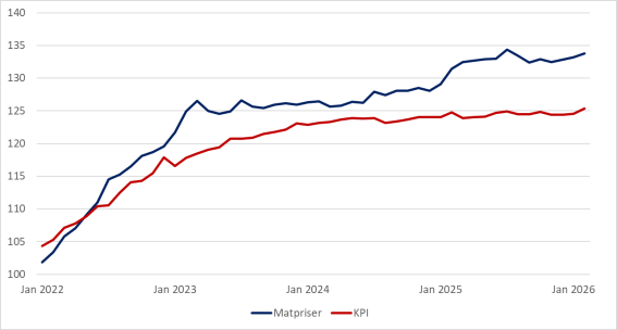(Inflation – KPI och matpriser, Sverige 2022 – jan 2026)