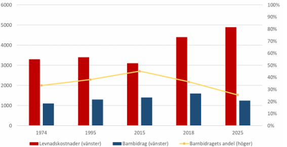 (Barnbidrag i förhållande till nödvändiga levnadskostnader för en 10-åring)