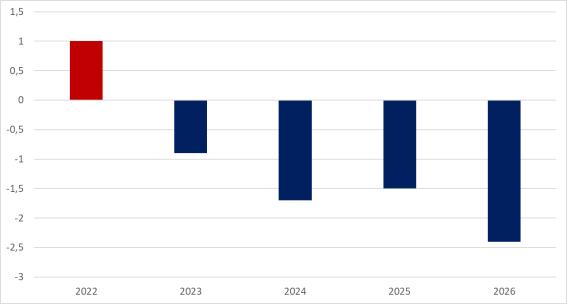 Årets budgetar förvärrar läget ytterligare. Ett reformutrymme på 80 miljarder togs i anspråk i höstbudgeten bara för 2026. Nu går staten med de största underskotten sedan 90-talskrisen, bortsett från pandemin. Underskotten beräknas uppgå till 363 miljarder under mandatperioden och enligt regeringens egna prognoser går regeringen med underskott alla år den här mandatperioden. Även justerat för Ukrainastödet beräknas regeringen missa de finanspolitiska målen under alla sina år vid makten.