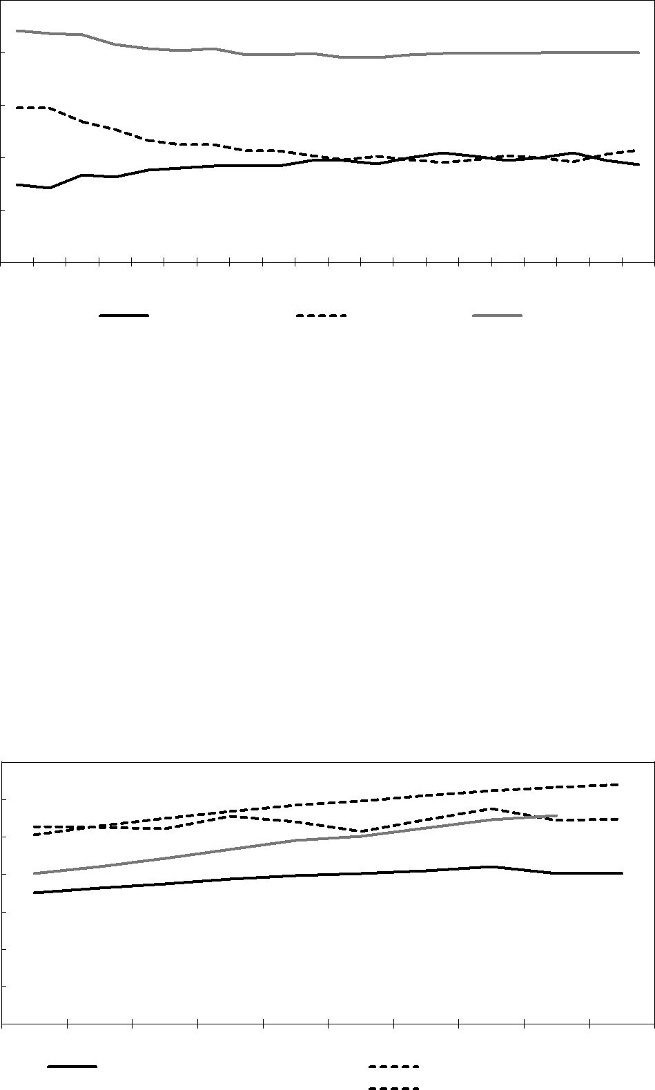 I SCB:s arbetskraftsundersökningar (AKU) jämförs sjukfrånvaron i olika arbets- marknadssektorer. Definitioner och mätmetoder skiljer sig mellan AKU och sjuk- frånvarouppgifterna i myndigheternas årsredovisningar, som Arbetsgivarverket sammanställer. Av den anledningen är uppgifterna enligt AKU inte jämförbara med Arbetsgivarverkets redovisning. I diagram 2.10 redovisas den genomsnittliga sjuk- frånvaron i den kommunala, den privata och den statliga sektorn enligt AKU upp- delad på kvinnor och män.