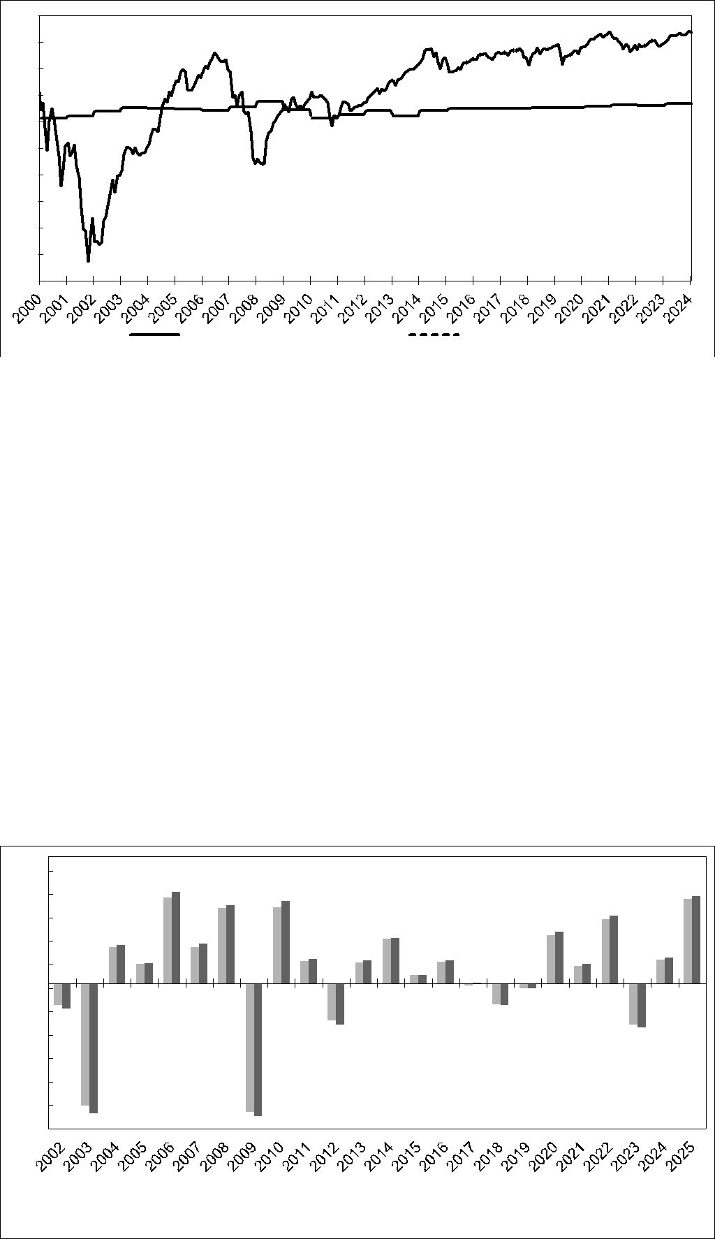 Som framgår av tabell 1.3 varierar börsutvecklingen betydligt mer än inkomstutvecklingen. Diagram 1.12 visar den genomsnittliga årliga värdeutvecklingen för premiepensionskapitalet sedan systemets start 2000, jämfört med utvecklingen om kapitalet i stället hade avsatts till inkomstpensionssystemet. Per den 31 december 2024 var den genomsnittliga årliga värdeutvecklingen 8,7 procent för premiepensionen, jämfört med 3,4 procent för inkomstpensionen.